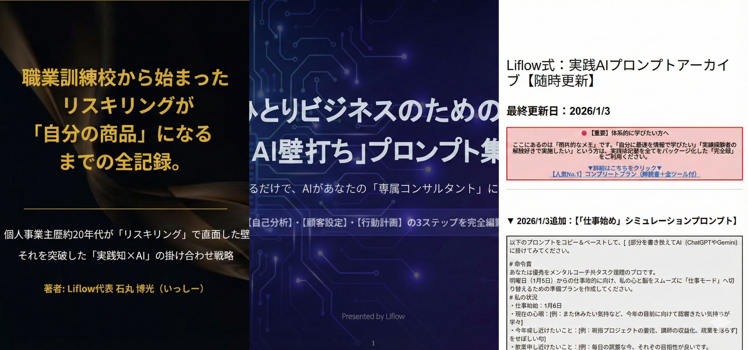 起業から約20年にわたる個人事業主としての実務経験と、リスキリングで得たIT・AI分野の知見。これらを体系化したコンテンツの販売をしています。